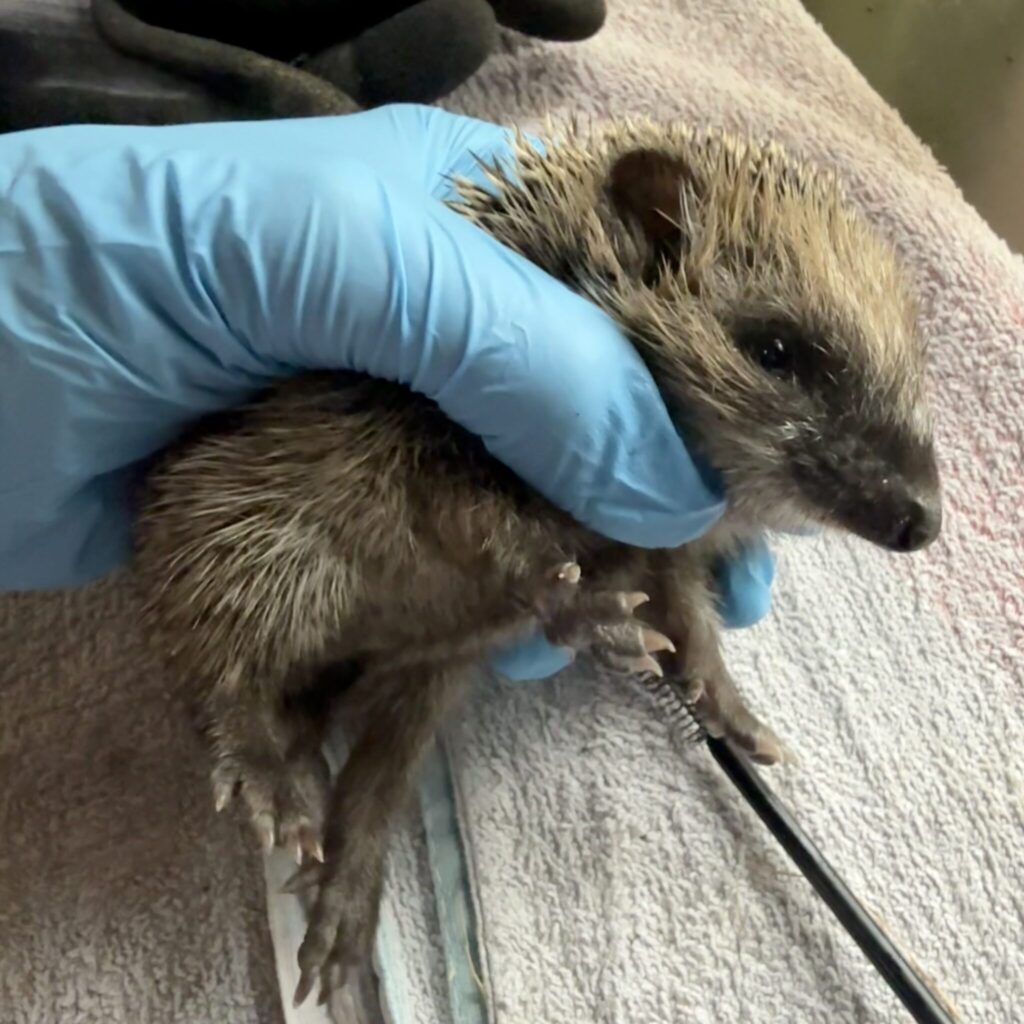 Senest har jeg selv fået stor fornøjelse af at være aktiv i bevarelsen af pindsvin i Danmark. Jeg har gennem 6 år fodret mellem 10 og 20 hvert år – men det er tydeligt for nedadgående – kan jeg se på det antal kg kattemad jeg bestiller. Jeg er senest blevet tilmeldt som chauffør i Pindsvineforeningen, hvor jeg kan køre nødstete pindsvin til de godkendte plejere, hvis ikke finderne selv kan komme til det. Denne weekend fik jeg lov at hjælpe med et kuld unger, der kom ind da jeg afleverede nogle krydderurter fra min have, som kunne bruges til pindsvin i pleje. Kuldet havde ligget hos deres døde mor, da haveejer fandt dem. En var desværre død under transporten men tre af dem var i live. Jeg hjalp med at børste flueæg af pelsen (for larverne kan æde et pindsvin levende) – således lignede det lille pindsvin til tider Hitlers fjerne kusine, når al pelsen var trukket til den ene side med en lille mascara-børste der blev dyppet i kogende vand ind imellem.
